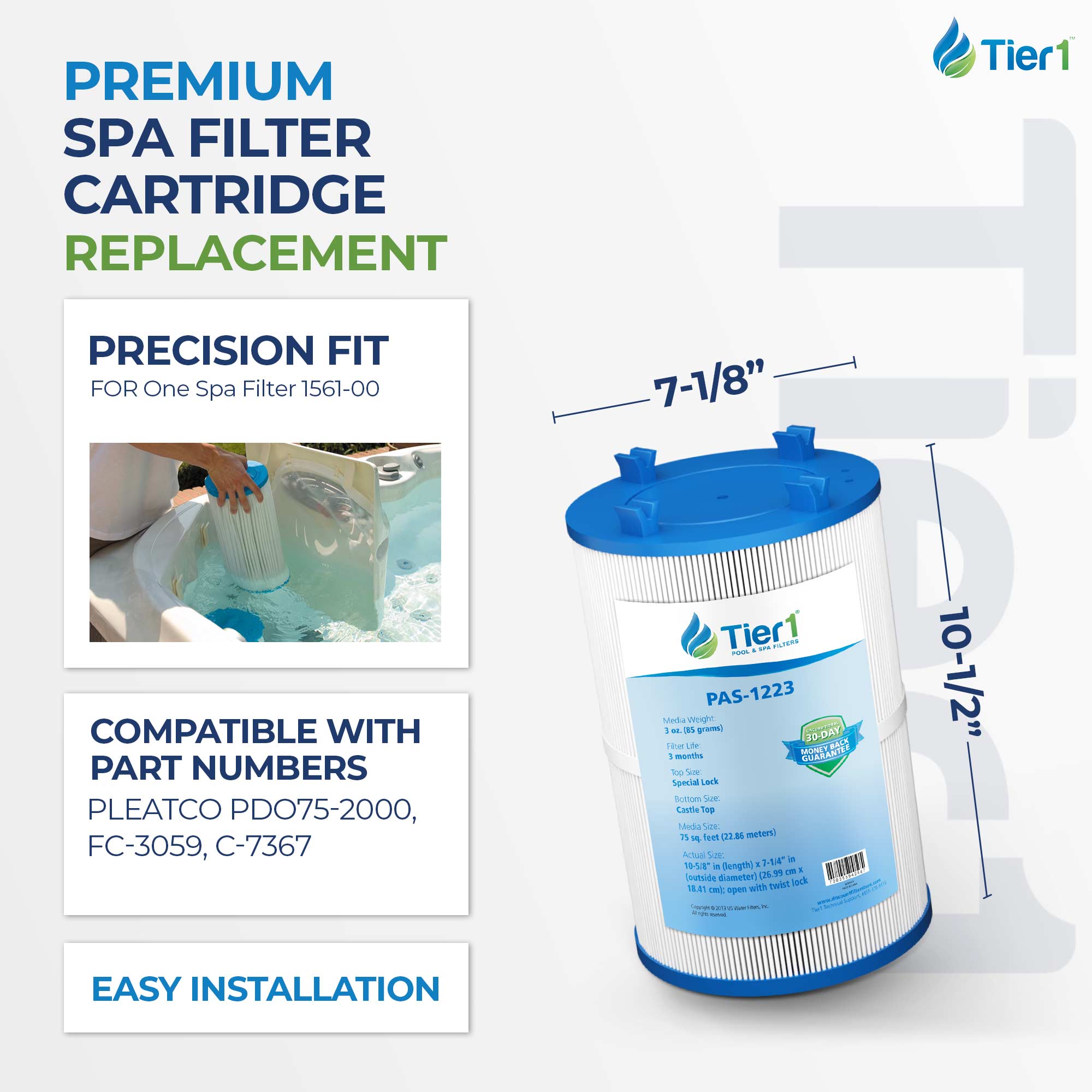 Tier1 PAS-1223 Replacement Pool and Spa Filter fits the Dimension 1561-00. Tier1 Pool and Spa filters will protect your investment engineered to outperform the competition and exceed your expectations. Features high durability flat bonded filter media that maintains strength even when loaded with sediment. Flat bonded media provides effective filtration across 100% of the media surface compared to point bond media where up to 25% of the filter surface is blocked by the fiber bonds. Supported by a high strength, high flow core to support industry leading flow rates the Tier1 Pool and Spa filters will clean your water faster and more efficiently with less wear and tear on your pump. Dive in with Tier1, the water's great!