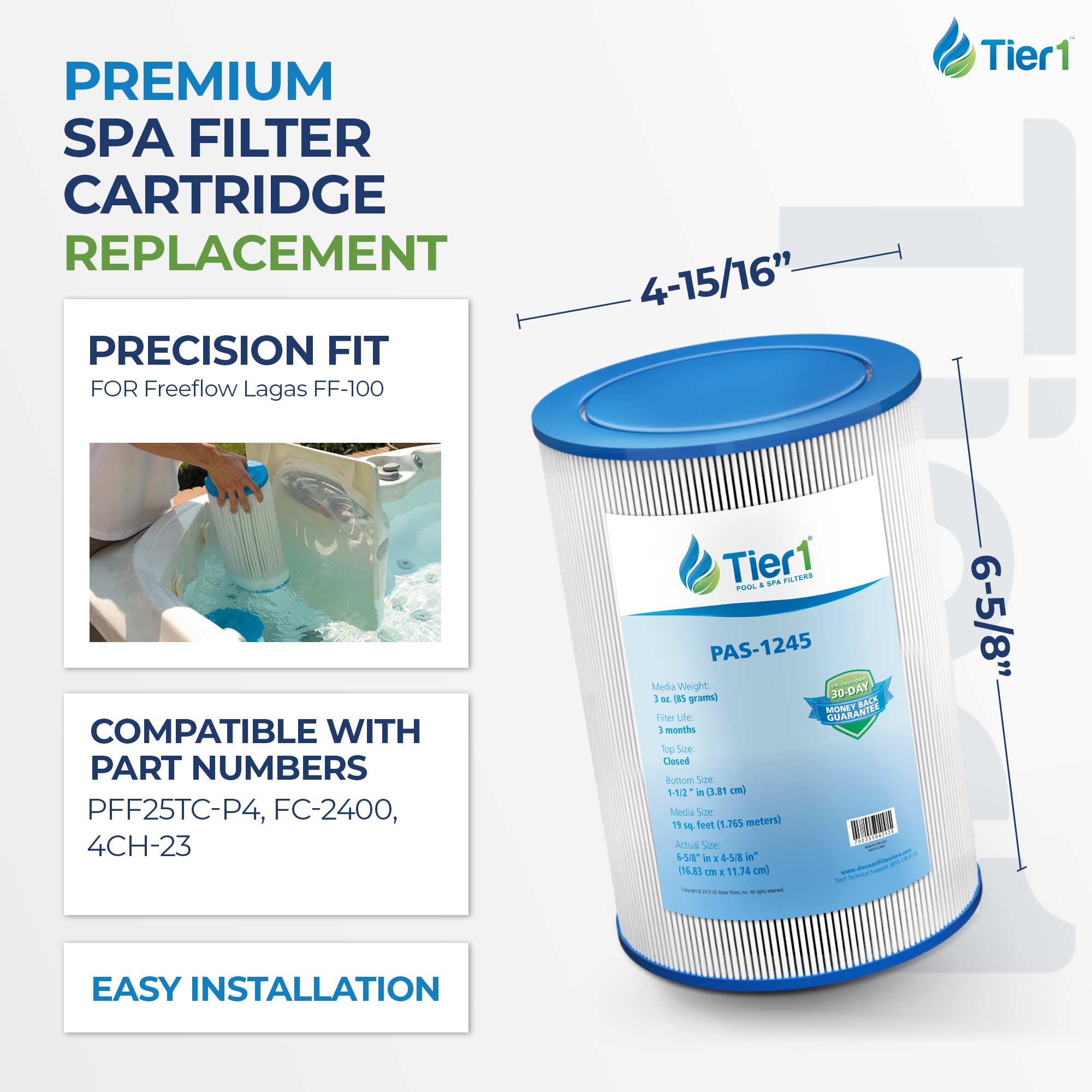 Tier1 PAS-1245 Replacement Pool and Spa Filter fits the Freeflow Lagas, TLX and RLX. Tier1 Pool and Spa filters will protect your investment engineered to outperform the competition and exceed your expectations. Features high durability flat bonded filter media that maintains strength even when loaded with sediment. Flat bonded media provides effective filtration across 100% of the media surface compared to point bond media where up to 25% of the filter surface is blocked by the fiber bonds. Supported by a high strength, high flow core to support industry leading flow rates the Tier1 Pool and Spa filters will clean your water faster and more efficiently with less wear and tear on your pump. Dive in with Tier1, the water's great!