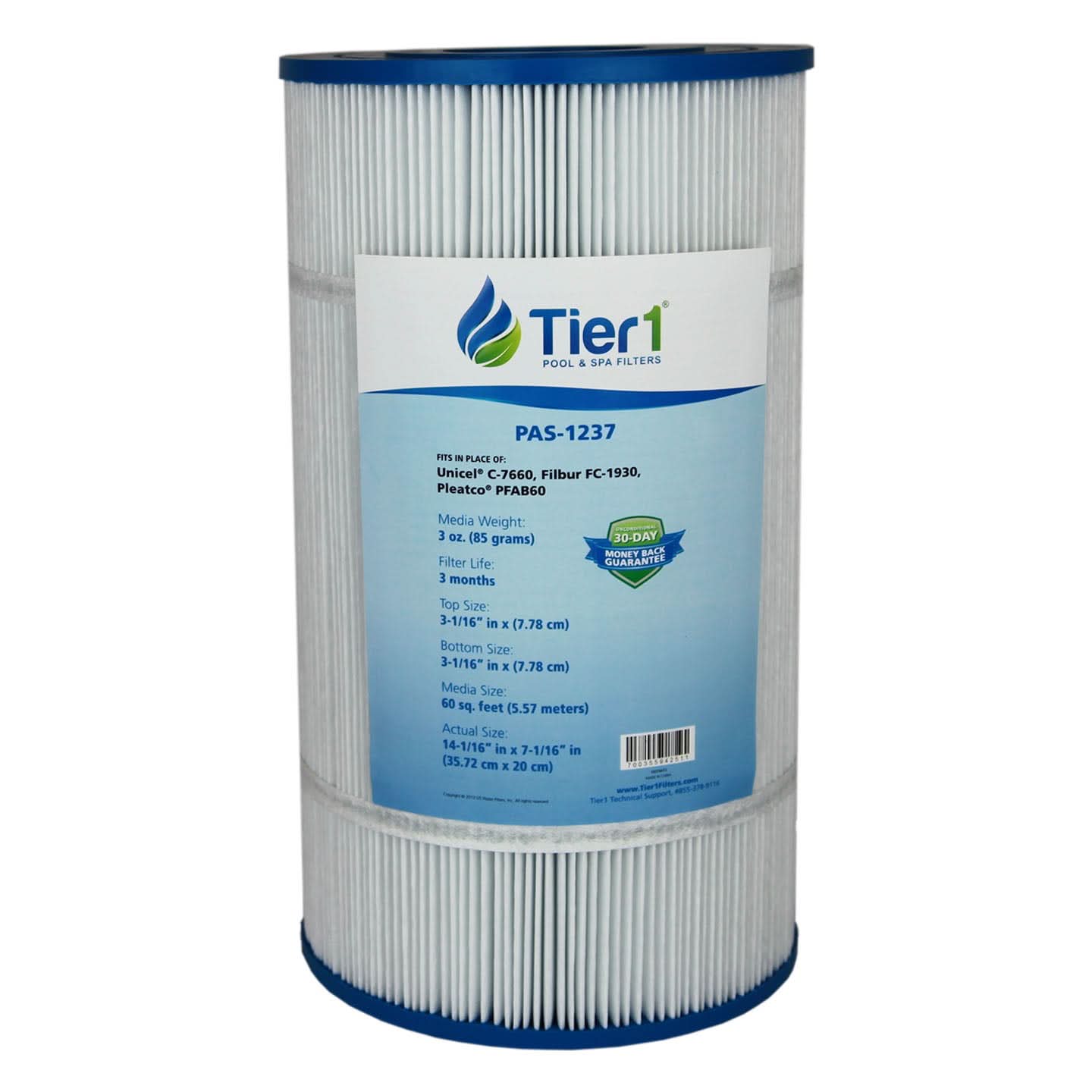 Tier1 PAS-1237 Replacement Pool and Spa Filter fits the Pentair / Pac Fab Mytilus-B 60 GPM MY 60, Mitra 60 GPM MA-60/160, Mytilus 60 60 GPM MY 60, Mytilus-B 140 GPM MY 140 (2 required) and Wet Institute Modufilter M-180 (3-required). Tier1 Pool and Spa filters will protect your investment engineered to outperform the competition and exceed your expectations. Features high durability flat bonded filter media that maintains strength even when loaded with sediment. Flat bonded media provides effective filtration across 100% of the media surface compared to point bond media where up to 25% of the filter surface is blocked by the fiber bonds. Supported by a high strength, high flow core to support industry leading flow rates the Tier1 Pool and Spa filters will clean your water faster and more efficiently with less wear and tear on your pump. Dive in with Tier1, the water's great!