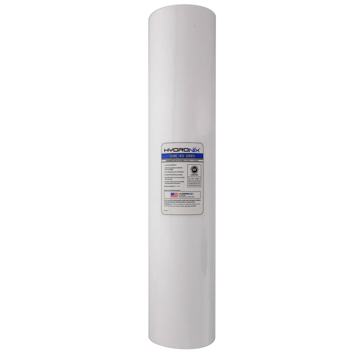 • The Hydronix SDC-45-2005 Sediment Depth Cartridge is a 5 micron sediment filter. The Hydronix SDC-45-2005 Sediment Water Filter measures 20-inch x 4-1/2-inch. The Hydronix SDC-45-2005 Polypropylene Prefilter has graded density for higher dirt-holding capacity. Hydronix Water Technology SDC-45-2005 water filter cartridges are made of 100% pure polypropylene. Hydronix SDC Sediment Depth Cartridges are perfect prefilters for GAC filters, RO systems, DI Systems, ice machines, wineries, and many more.