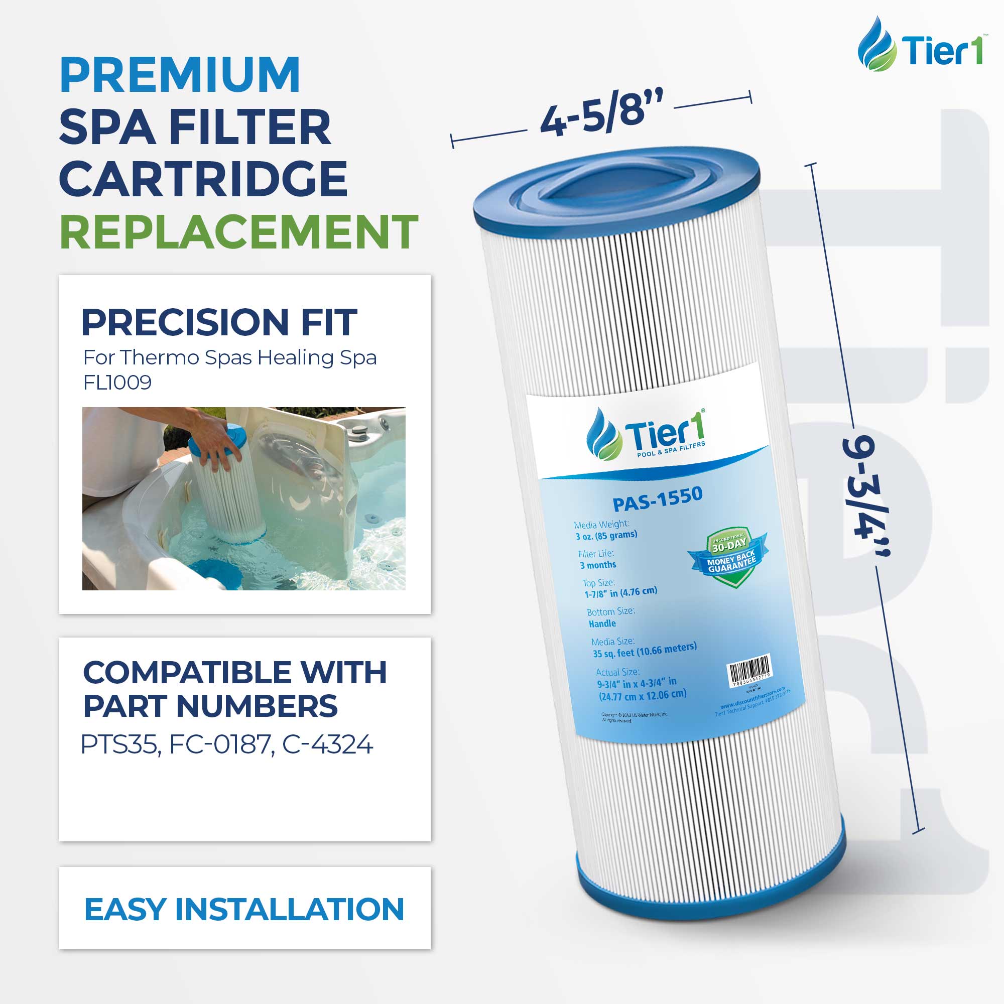 Tier1 PAS-1550 Replacement Pool and Spa Filter fits the Thermo Spas Healing Spa. Tier1 Pool and Spa filters will protect your investment engineered to outperform the competition and exceed your expectations. Features high durability flat bonded filter media that maintains strength even when loaded with sediment. Flat bonded media provides effective filtration across 100% of the media surface compared to point bond media where up to 25% of the filter surface is blocked by the fiber bonds. Supported by a high strength, high flow core to support industry leading flow rates the Tier1 Pool and Spa filters will clean your water faster and more efficiently with less wear and tear on your pump. Dive in with Tier1, the water's great!